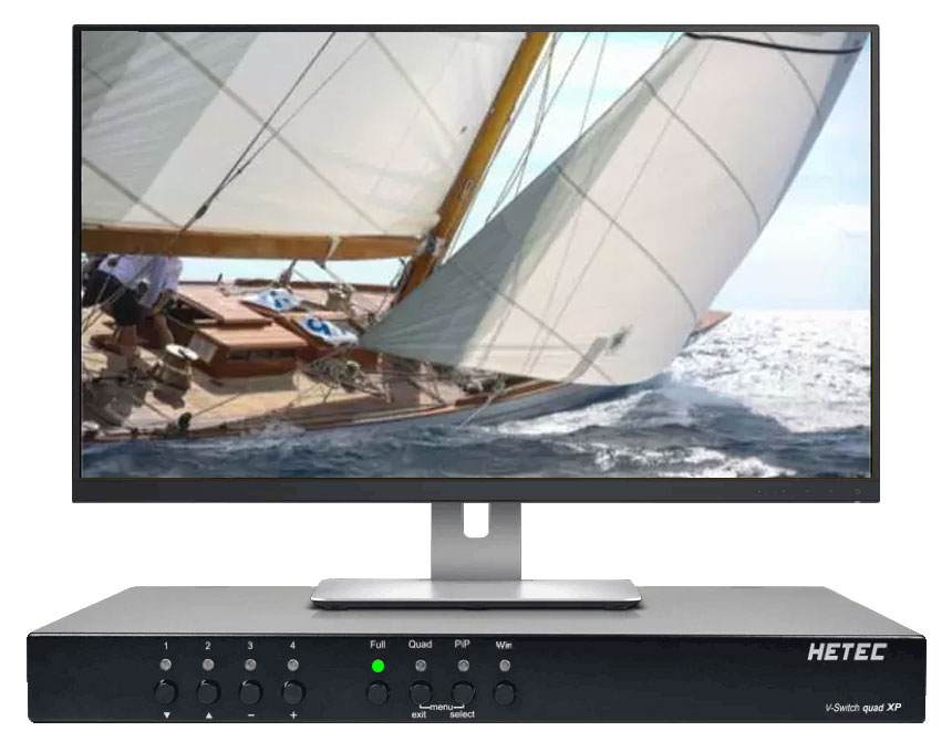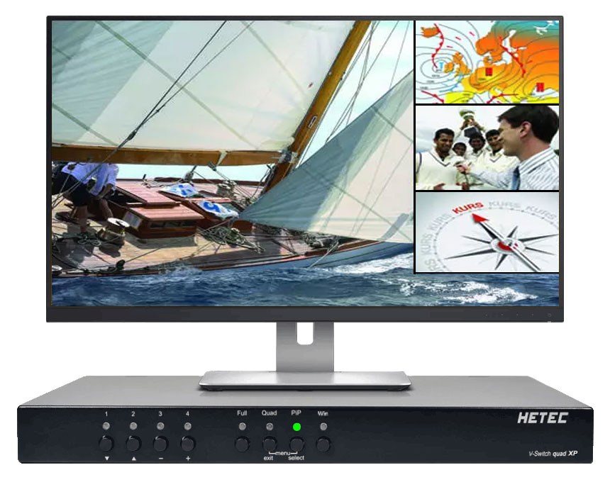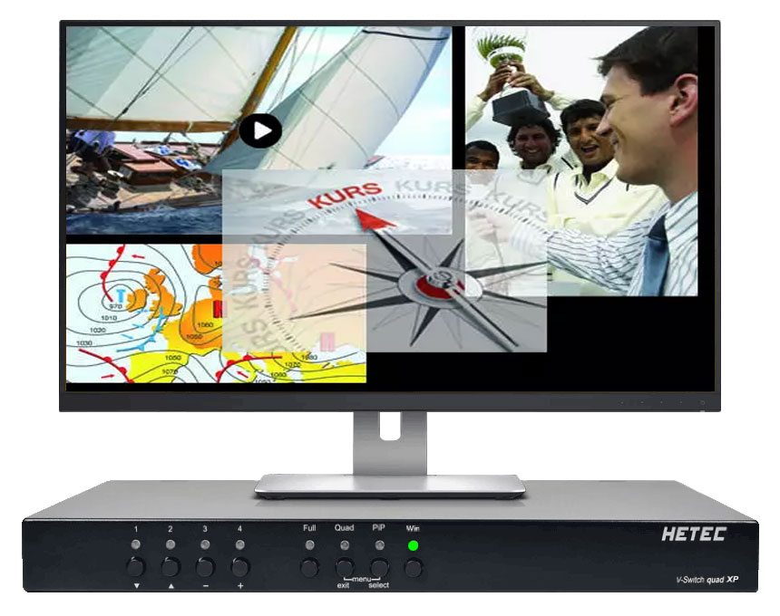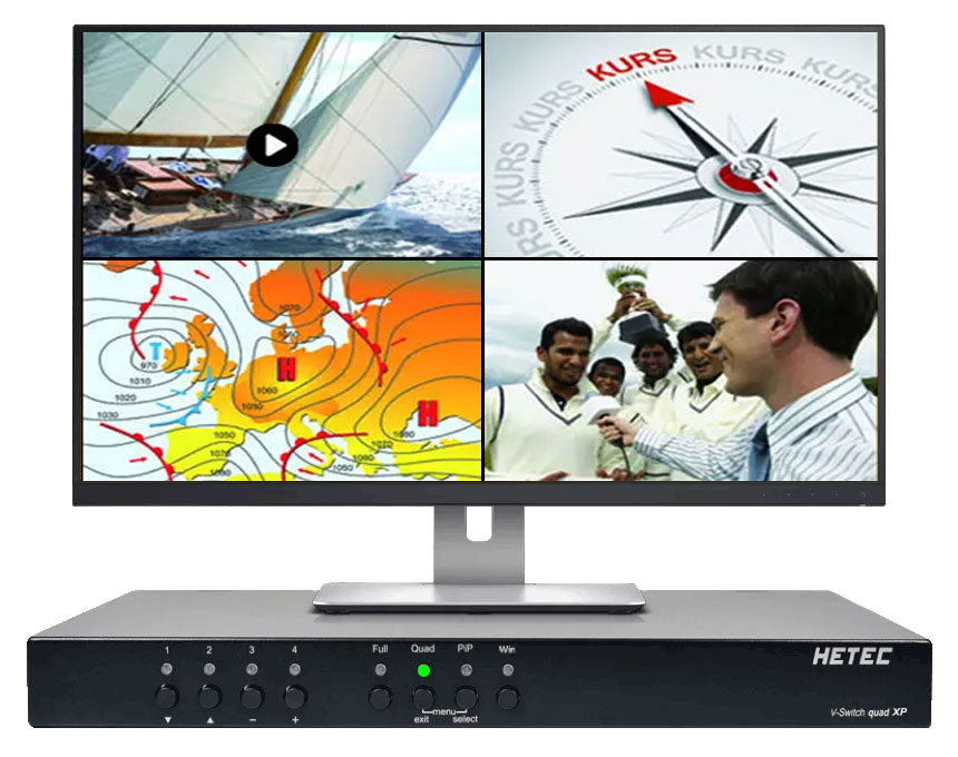 Mit dem V-Switch quad XP ist jedes Videosignal in beliebiger Größe und Position auf dem Bildschirm darstellbar. Beide MultiViewer zeichnen sich durch eine leistungsfähige Echtzeit-Signalverarbeitung und die Wiedergabe von Bildinhalten in hervorragender Qualität aus.