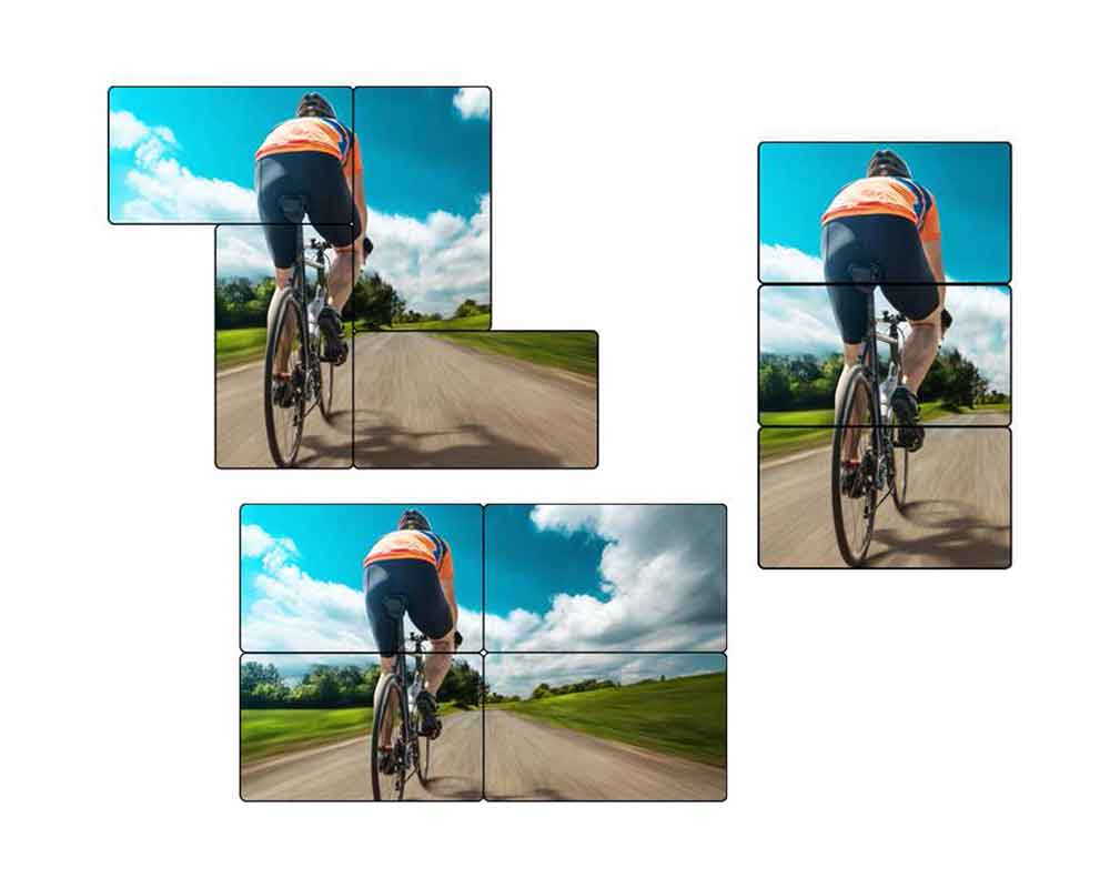 Die Ausschnitte können sich auch überlappen bzw. Abstände zwischen den Displays können berücksichtigt werden.