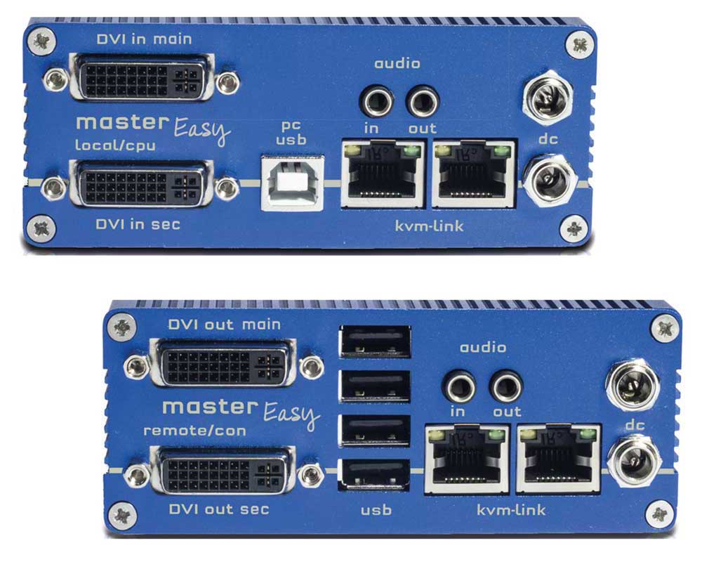 masterEASY single ist ein hochoptimierter KVM Extender over IP für Distanzen bis 150m bei einer Aufl ösung von 1920x1200@60Hz und ist in Kupfer erhältlich. masterEASY KVM Extender überzeugen durch ein ultrafl aches Gehäuse - 4 single Units in 1 HE , haben embedded sound und sind kompatibel mit Standard- Netzwerkkomponenten. Videosharing, USB Sharing, Multihead.