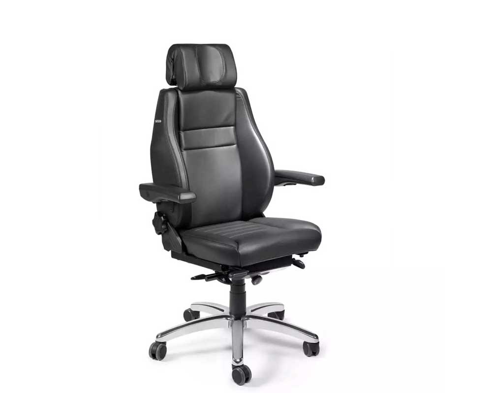 | HW-RH-SECURE24 EXCLUSIV | RH Secure24 EXCLUSIV 24/7 Leitwartenstuhl Stoff Staccato (schwarz) Leder Kombination Mit Sitztiefenverstellung von 12 cm Flip up Armlehnen 4 Wege Schukra Kopfstütze RH Secure24 Exclusiv Große Rollen für harte Böden Gasfeder mit Sitzhöhe 41-53 cm Aluminium-Fußkreuz ø 71 cm |
