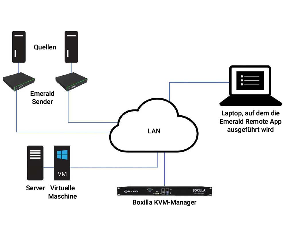 Der gesamte Zugriff wird durch den KVM Netzwerk[1]Manager Boxilla™ in Echtzeit authentifiziert, was sicherstellt, dass der Emerald-Administrator volle Kontrolle hat und den Fernzugriff auf die Benutzer beschränken kann, die diesen benötigen.