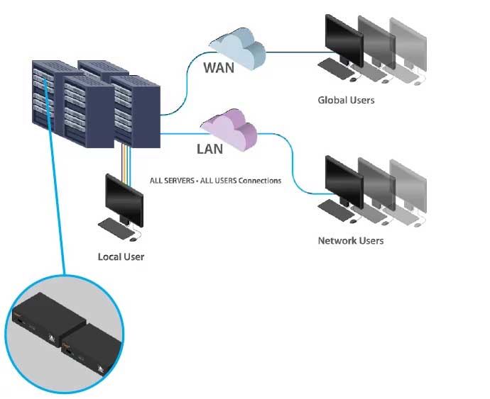 - Fernsteuerung eines einzelnen Rechners oder remote Zugriff über ein vorhandenes KVM-System