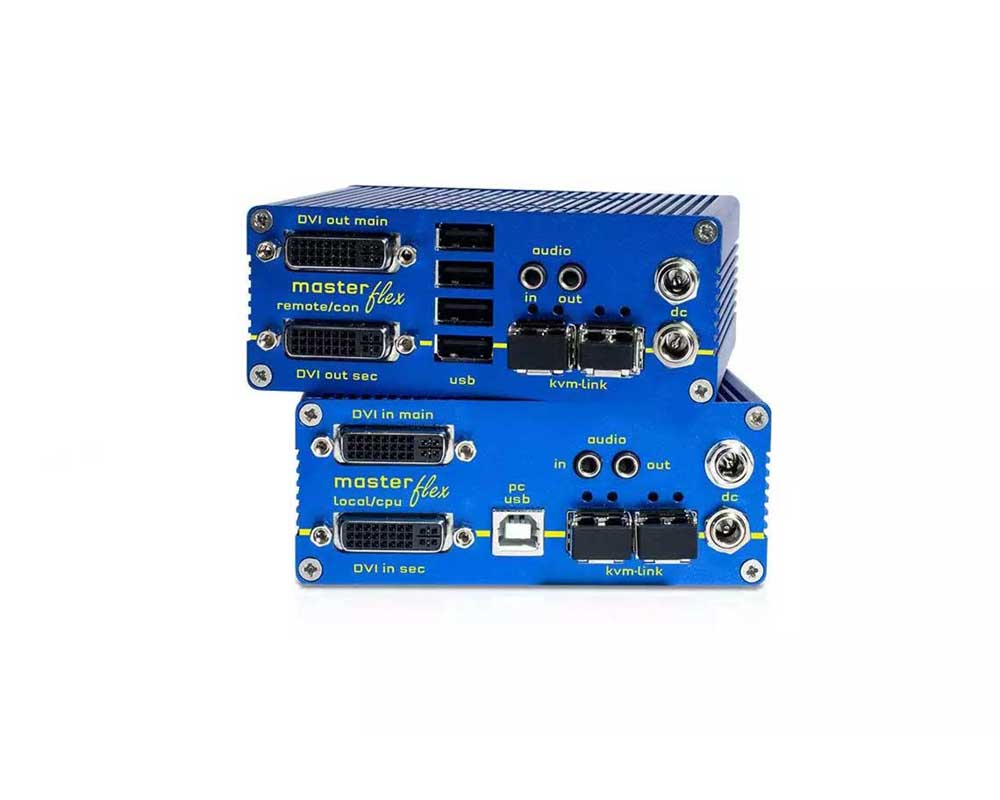 MASTERflex dual ist ein hochoptimierter KVM Extender over IP für Distanzen bis zu 160km bei einer Auflösung von 1920×1200@60Hz und ist in Fiber-Version erhältlich. Für point to point Verbindung oder in Matrix Switching Systemen bis zu 100 Endpunkte. Die kvm-tec Switching Manager Software -Switch up@work- für ein intuitives Management im Switching System ist inkludiert.