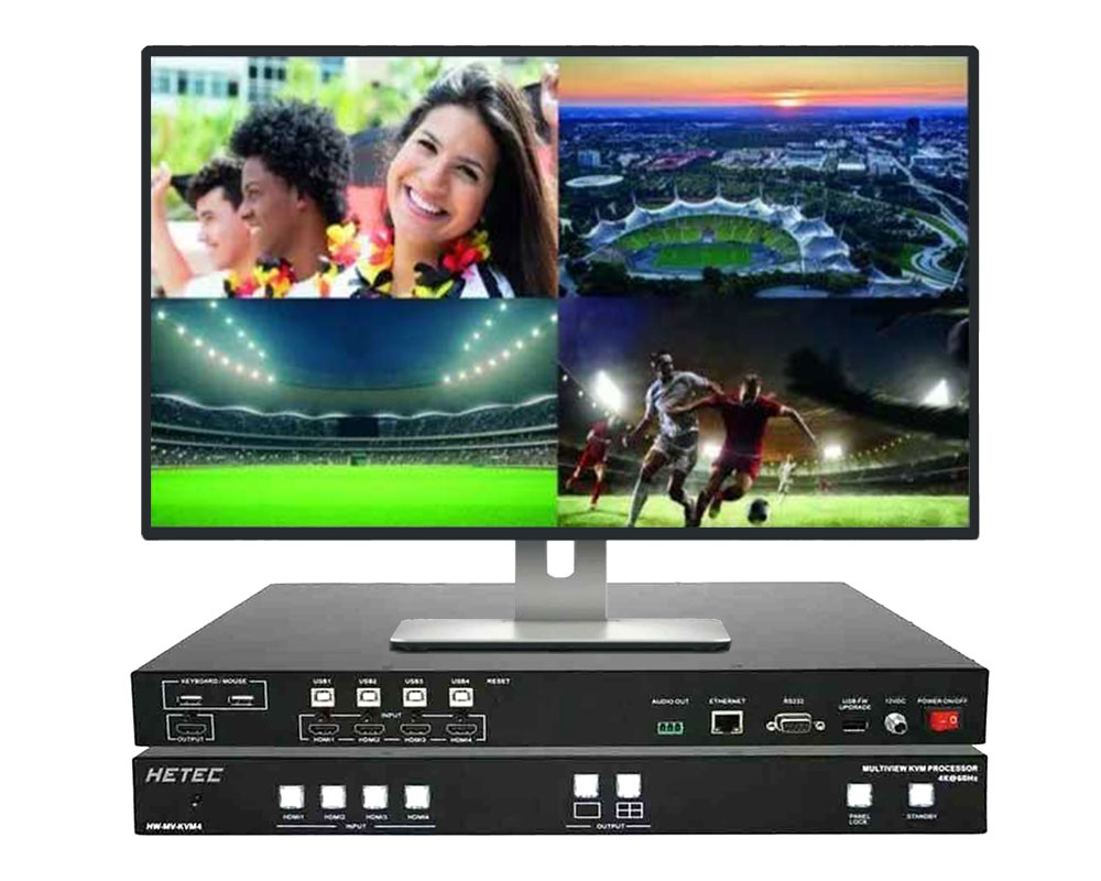 Mit dem Quad-und UHD Multiviewer werden Videosignale von 4 Rechner gleichzeitig auf einem einzigen Monitor angezeigt.