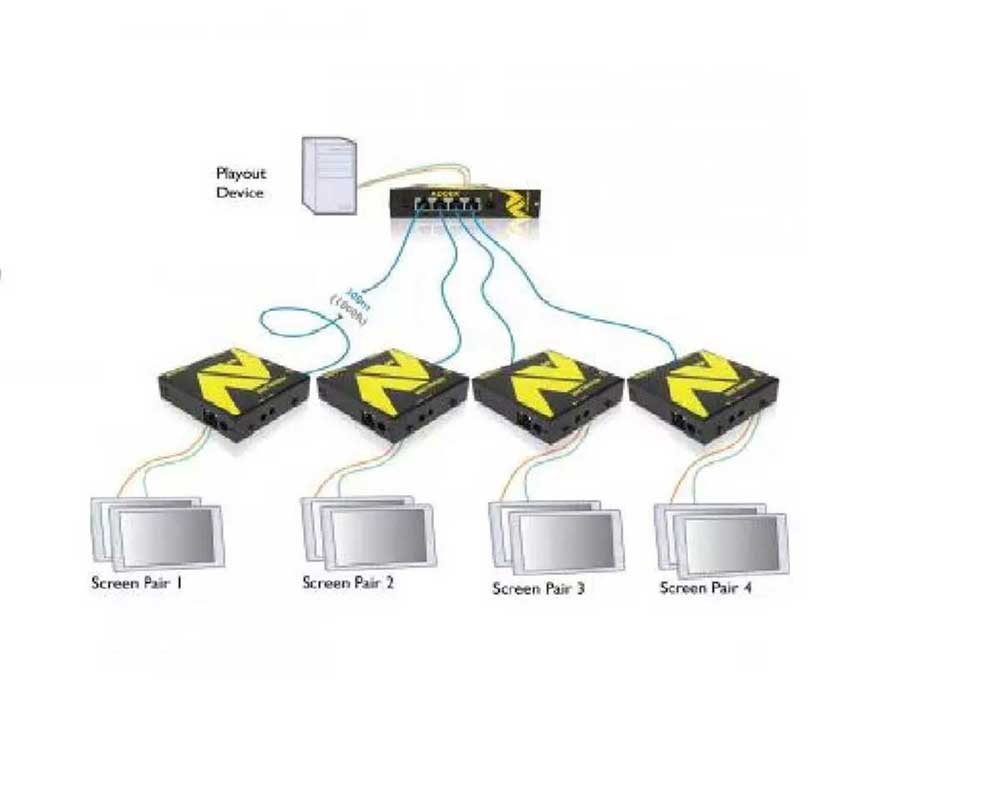 Verteiler von DP, DVI, HDMI, VGA und Audio.